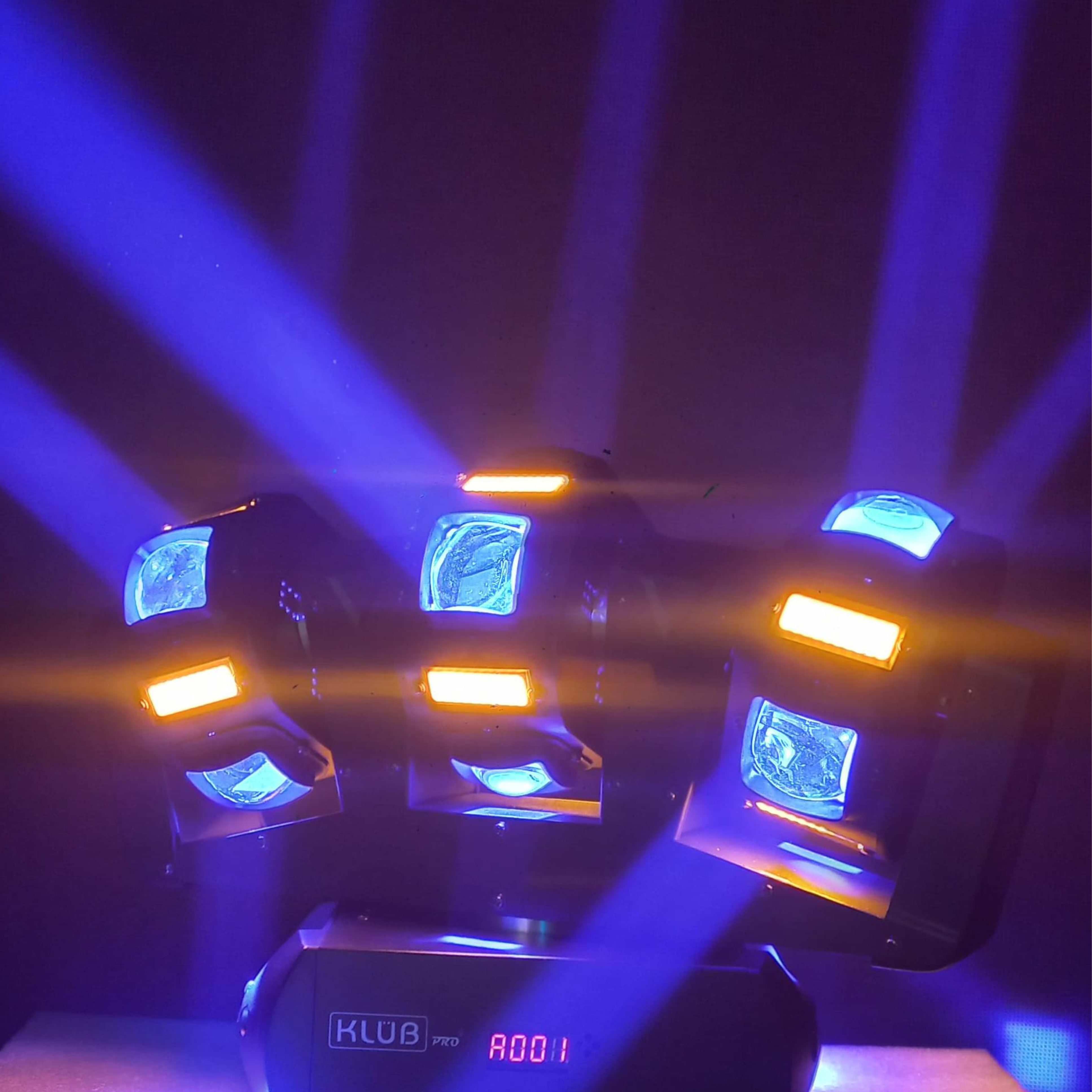 O Multi Raio TQ300 é um equipamento completo para quem busca impacto visual e versatilidade em eventos, festas e shows. Equipado com 12 LEDs de 10W RGBW e 12 COB âmbar de 5W, proporciona efeitos vibrantes e quentes, com cobertura ampla e intensa.