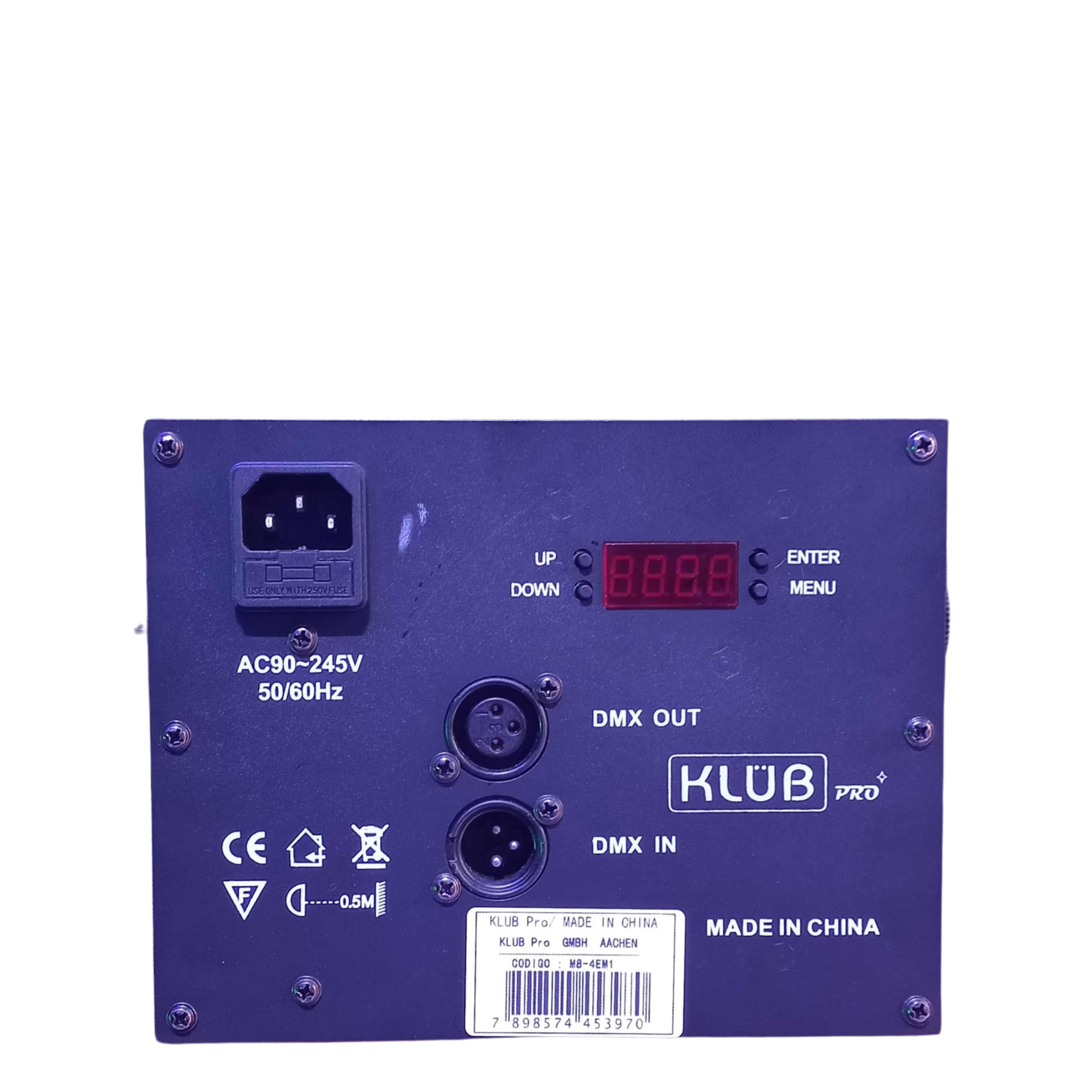 – DMX (14 canais), Automático, Som-Ativo, Master-Slave