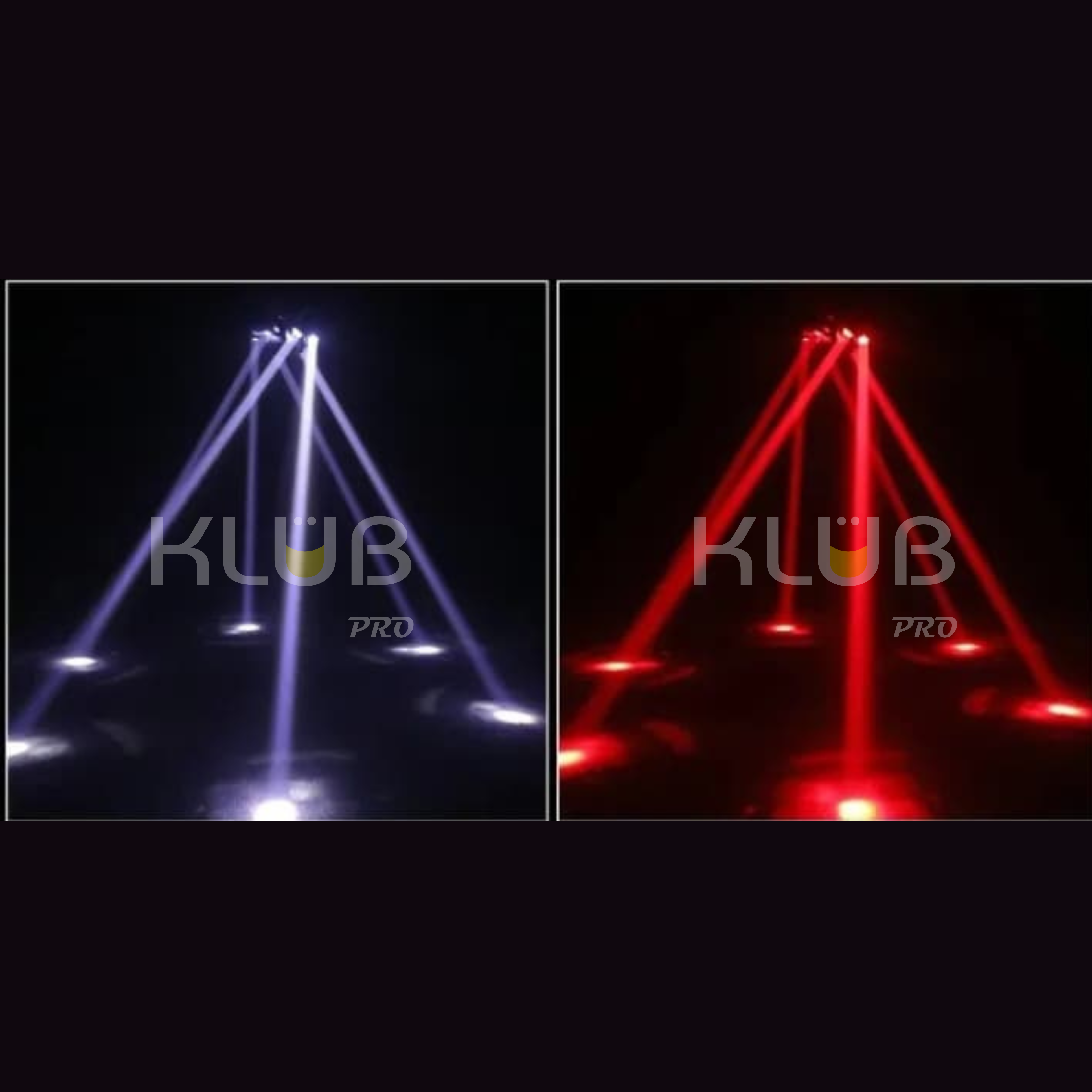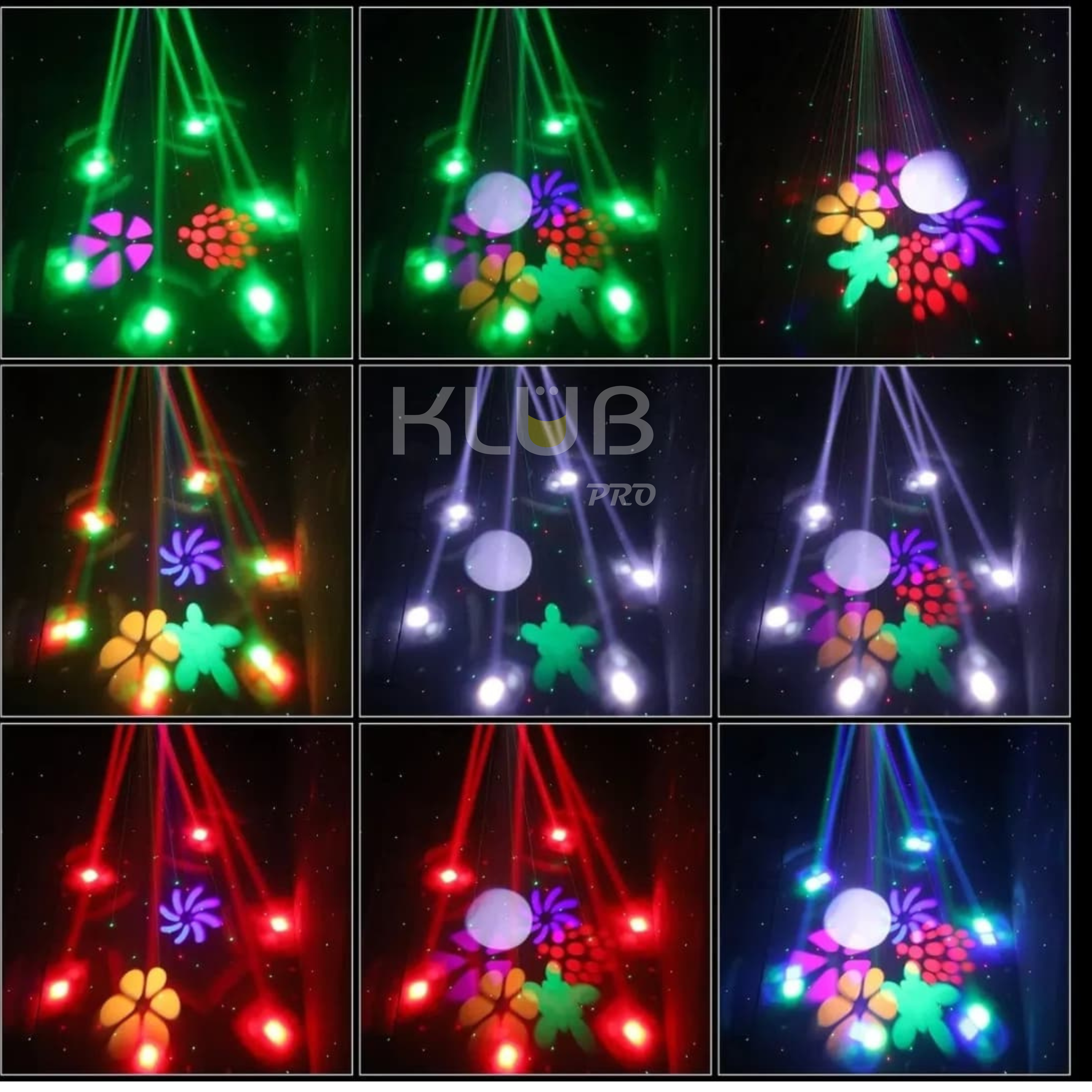 – 6 LEDs de 10W com gobo, criando efeitos de desenhos únicos no ar