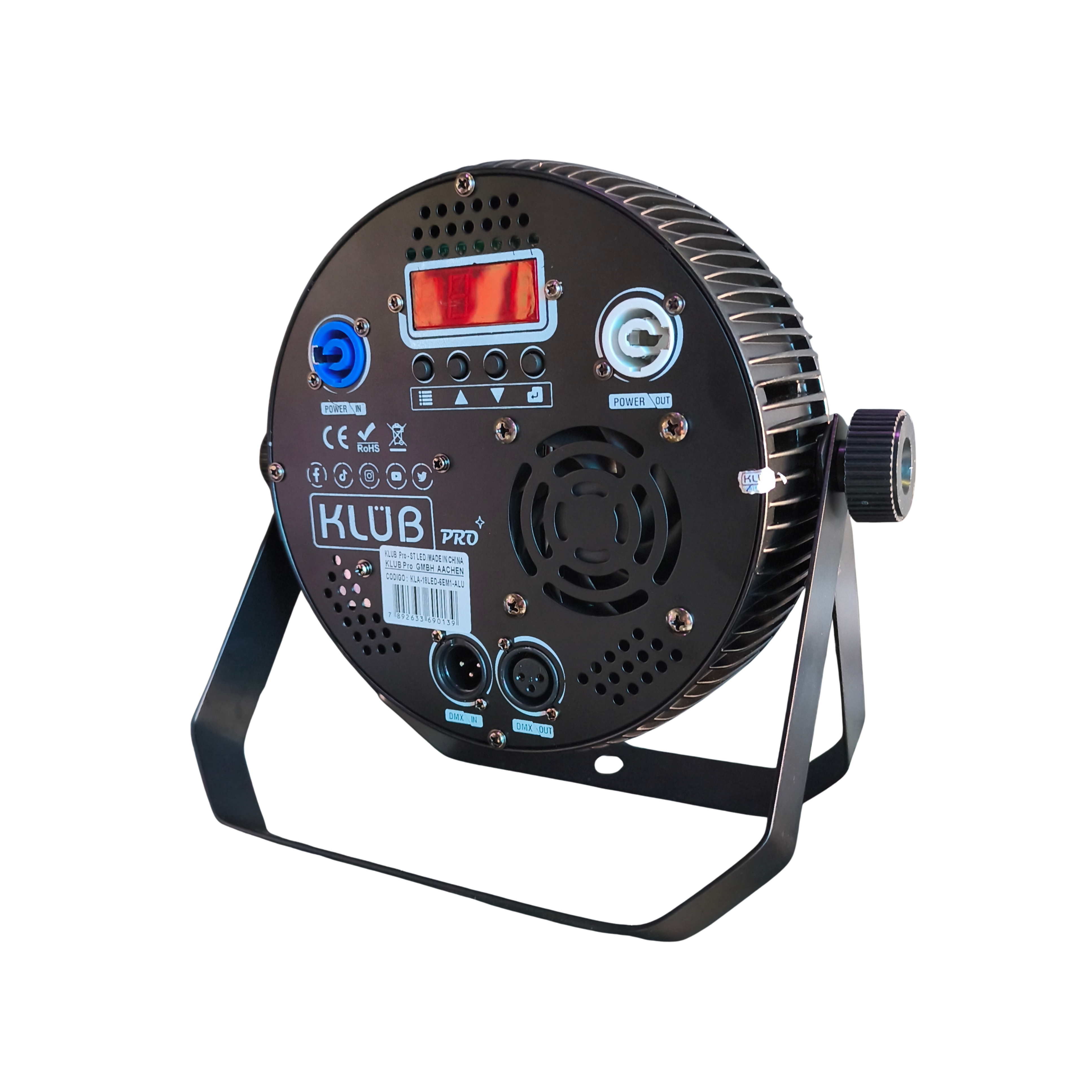 Funciona via DMX, som, controle remoto ou modo automático.